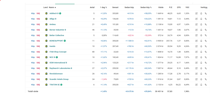 Jag låter min kvantportfölj trendande värde gå in i min blandportfölj. Helt sanslös avkastning på nästan 40% på ett år. Ska sälja av en del och investera i annat, men så länge de går bra behåller jag det mesta