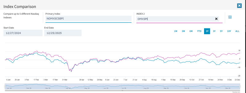 I början av 2025 menade många analytiker att nu är det småbolagens återkomst. Det har gått tungt för dessa. NOMXSCSEPI ned 3,41% i år. Jämför man med OMXSPI så har storbolaget gått riktigt bra andra halvåret och småbolagen knackigare. Vad räknas som ett småbolag? Smallcap får ha bolag max 1,5 Miljarder värde. Så det är ju inga pluttbolag. I andra länder har man andra gränser. Vi kan ju ta Björn Borg som ligger runt 1,5 Miljarder i börsvärde. Björn Borg finns i många länder. Så så små är inte bolagen och man kan låta sig luras av namnet på index små-bolag. Kolla börsvärdet. Jag har som regel att inte köpa bolag under 1 Miljard kronor i börsvärde. Visst det är oftast på de små listorna man hittar raketerna. Jag är dock mer intresserad av stabilitet, snarare än chansa på enskilda case.